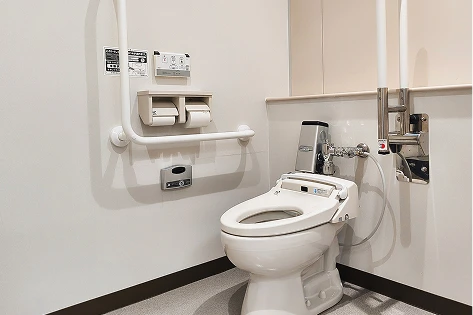 介助が必要な方も使いやすいように、十分な広さや手すりなどの位置を考慮したトイレをご用意しています。