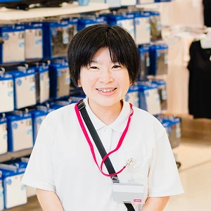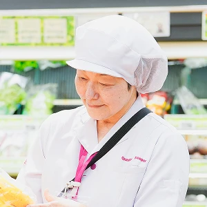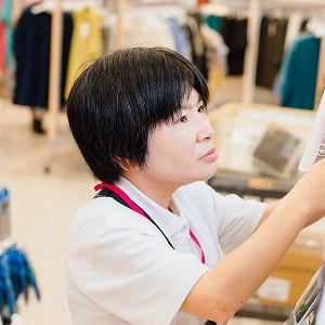 商品の品質を確認することが主な業務です。食品担当の場合は食品の鮮度が保たれているか、衣料品担当の場合は衣服がきれいに折りたたまれているかなどを確認。お客さまが安心して買い物いただける商品かどうかをチェックします。